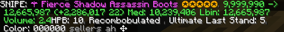 ➡️ Added a second lbin update to the sniper right before the main api updates to have changed lbins ready (from sells/or pre api). Should reduce the cases where there technically was a different lbin than the sniper displays. Thanks for the report @kuvdra