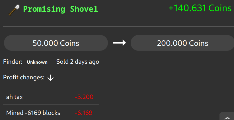 ➡️ Fixed items without any nbt special data not showing up in flip-tracking. Those just use the latest purchase of the item type to estimate the flip profit. Thanks for the report @spearmintt